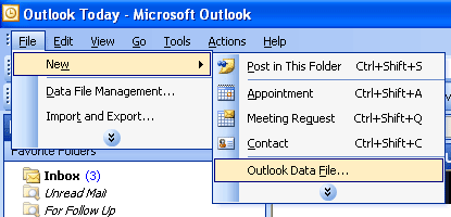 2. Start Microsoft Outlook and click the File-menu. Select “New” and then “Outlook Data File...”